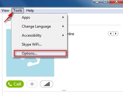 Крок 1 : Відкрийте Skype, натиснувши на іконку утиліти на робочому столі або знайти та відкрити його на меню Пуск (у лівій частині екрану). Крок 2 : Увійдіть Skype . На панелі інструментів, виберіть Інструменти -> Установки , щоб налаштувати деякі параметри.