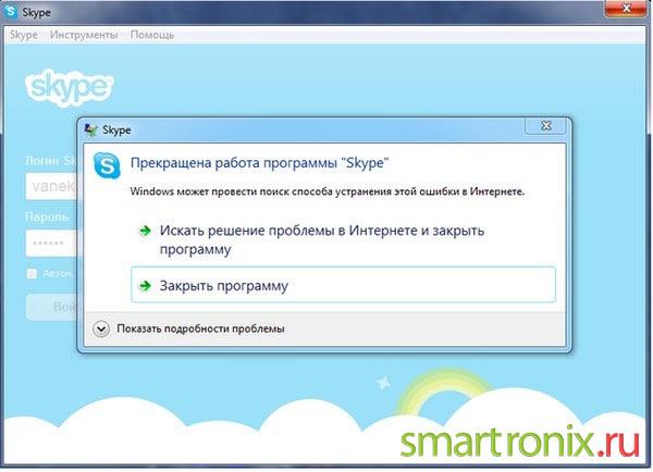 Досить часто програма Skype завершується аварійно й сама по собі з написом «Припинена робота програми «Skype». Начебто працює стабільно, але періодично закривається. Доводиться відкривати скайп заново, що, звичайно ж, дратує. Що можна порадити в таких ситуаціях? Ну по-перше, спробуйте перевстановити програму, завантаживши останню версію дистрибутива з сайту розробників. Багато часу це не займе, а вирішити проблему можливо допоможе. Головне не качати дистрибутив зі сторонніх сайтів, версія там може лежати не свіжа, а і вірус можна ненароком зловити.