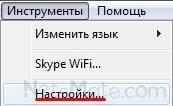 - Тепер, якщо немає вихідного звуку в Скайпі, натискаємо на «Налаштування». Це самий останній пункт в меню.