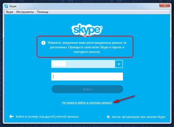 Якщо ви якийсь із полів заповнили не правильно (логін та пароль), програма видасть ось таке попередження. Якщо ви зовсім не можете згадає логін і пароль, доведеться відновлювати свою обліковий запис.