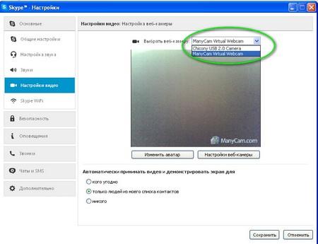 Потім там, де ви хочете використовувати камеру відкрийте настройки і виберіть камеру ManyCam.