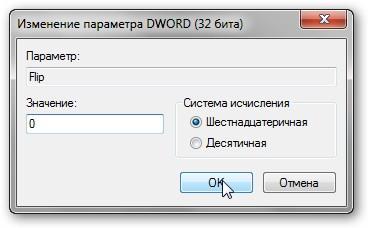 Міняємо останній 0 або 1 на 1 або 0. Тобто якщо там спочатку була рядок HKR,DefaultSettings,Flip,0×00010001,1, то її потрібно змінити на HKR,DefaultSettings,Flip,0×00010001,0. Змінюється лише остання цифра.