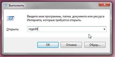 Спочатку запускаємо Пуск -> Виконати або натискаємо одночасно кнопки Win + R. У вікні вводимо regedit і натискаємо Enter:
