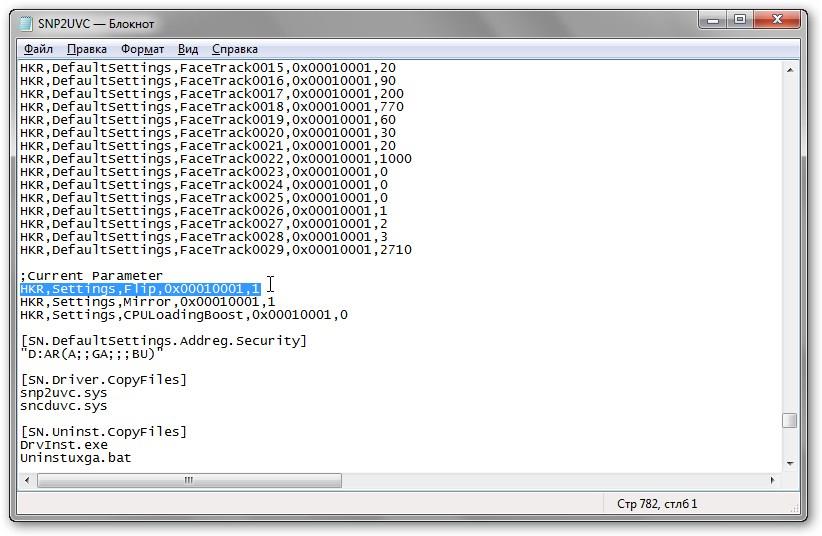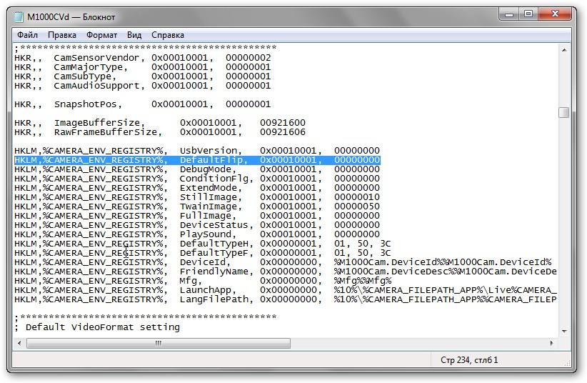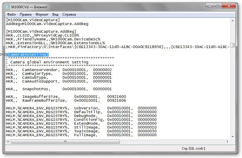 - Редагування файла з описом драйвера (.inf-файлу). Справа в тому, що при встановленні камери налаштування зчитуються саме з цього файлу. Варіант цілком робочий і простий;