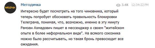 На думку деяких Telegram-каналів, після появи Кадирова в месенджері загроза його блокування зникла.