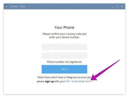 Якщо у вас поки немає зареєстрованого аккаунта в Телеграм, внизу екрана з’явиться напис клацнути тут — here.