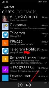 - за допомогою запропонованих мереж і знанням прізвища та ім’я користувача, знаходимо його в мережі і додаємо в контакти в Телеграм для windows phone.