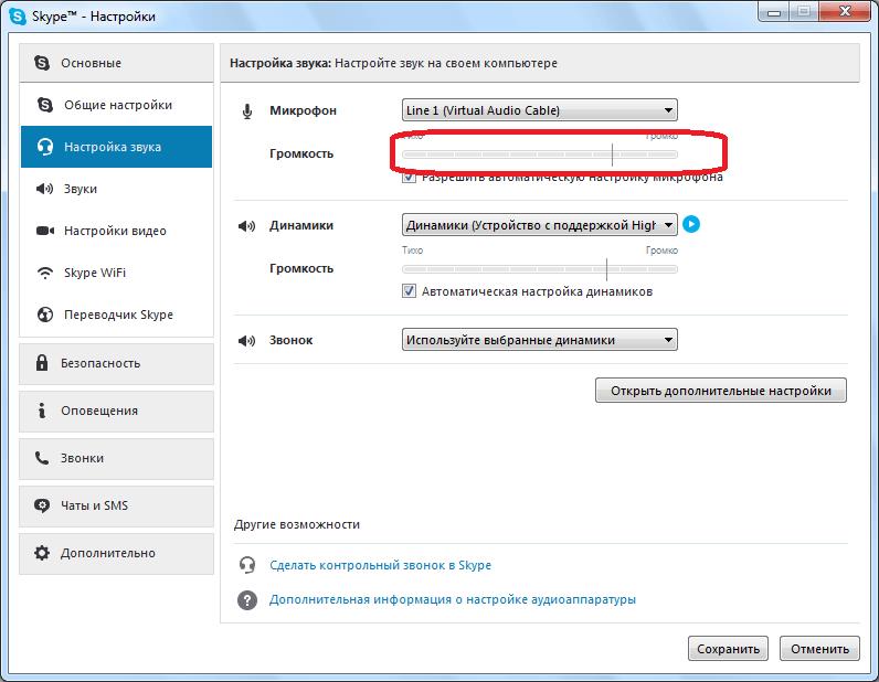 Крім того, знявши галочку з пункту «Дозволити автоматичну настройку мікрофона» можна вручну відрегулювати гучність переданої музики.