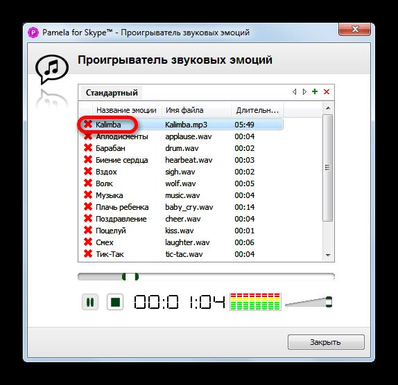 Організувати трансляцію музичних композицій в Pamela for Skype можна через спеціальний інструмент — «Програвач звукових емоцій». Головне завдання цього інструменту — передача емоцій за допомогою набору звукових файлів (оплески, зітхання, барабан тощо) у форматі WAV. Але через Програвач звукових емоцій можна також додавати звичайні музичні файли у форматі MP3, WMA і OGG, що нам і потрібно.