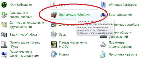 Вибираємо зі списку «Брандмауер Windows».