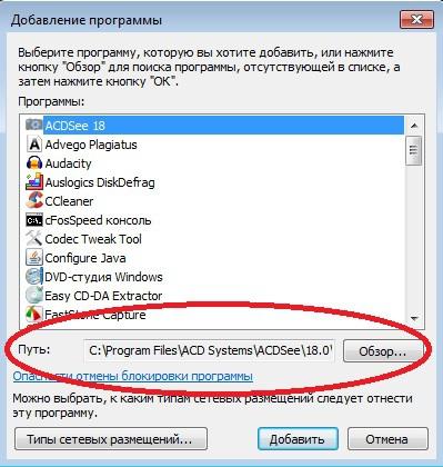 У віконці, натискаємо на значок «плюс» і в «провіднику» шукаємо програму скайп (як правило вона знаходиться за адресоюProgram FilesSkypePhoneSkype.exe»).