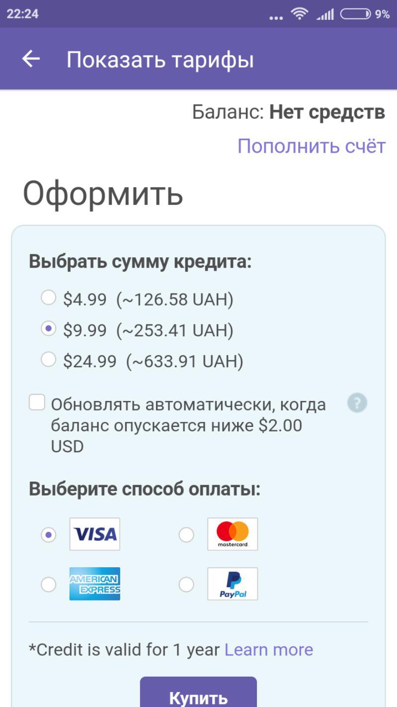 Ви також маєте можливість придбати кредити на сайті account.viber.com.
