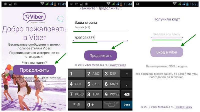 Вибер: перший запуск і реєстрація