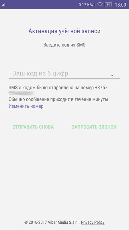 В принципі, те ж саме стосується і відповіді на питання, як зайти в Вайбер з іншого телефону. Наприклад, якщо був куплений новий смартфон — і тепер хочеться спілкуватися в Вайбере на ньому. Тут той же алгоритм дій: вказуємо мобільний номер (старий, до якого прив’язана обліковий запис), отримуємо СМС, вводимо код — насолоджуємося спілкуванням.