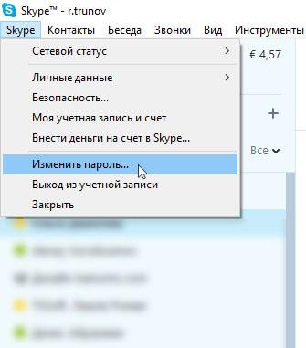 Як змінити пароль в Skype?