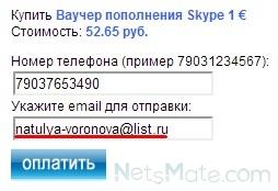 - Як внести гроші на Скайп легко і швидко? Купивши ваучер. Це дуже зручно, так як внести гроші на skype-рахунок таким чином можна в лічені секунди. Що ми зараз і зробимо. Вибираємо, наприклад, ваучер поповнення на 1 євро (39 рублів).