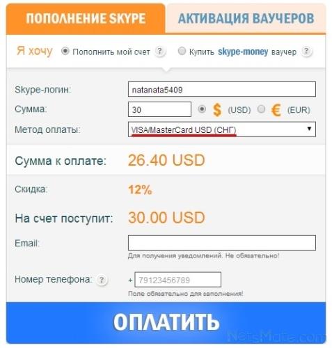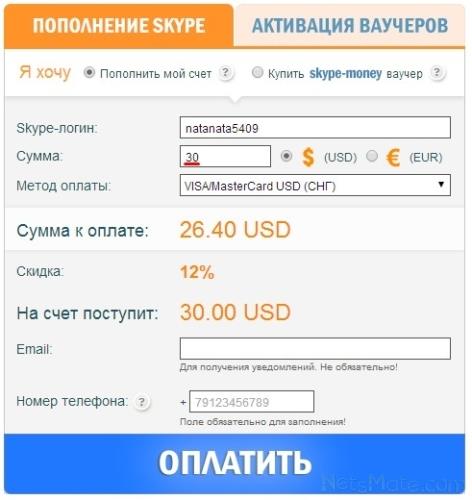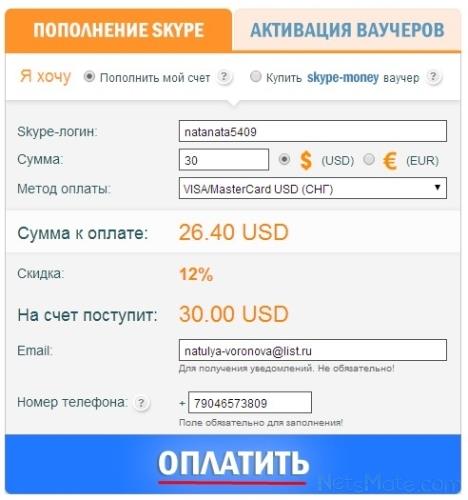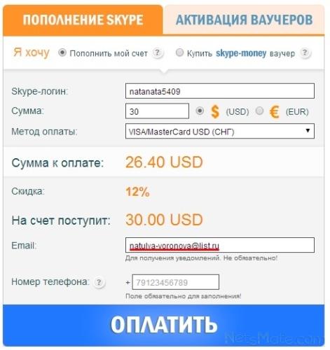 Поповнюємо рахунок Скайпу на офіційному сайті, а також на сайті skype-money.ru. Купуємо ваучер на oplata-voip.ru. Платимо за допомогою телефону, банківської карти, сервісу Яндекс.Гроші. Оплачуємо готівкою з допомогою платіжного терміналу.