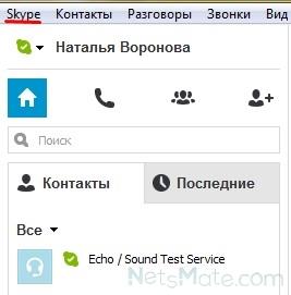 - Натискаємо на розділ Skype, що знаходиться вгорі ліворуч.
