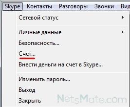 - Заходимо в Скайп, щоб дізнатися баланс.