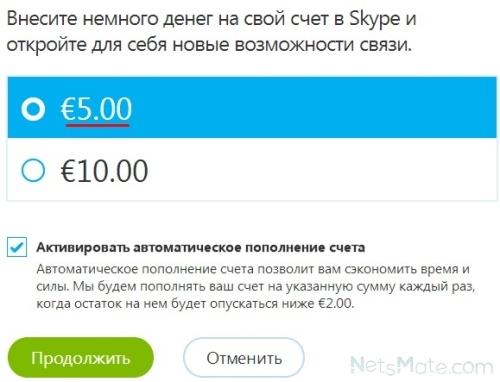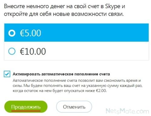 - Щоб не класти гроші на Скайп кожен раз, можна залишити галочку навпроти «Активувати автоматичне поповнення рахунку».