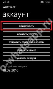 Програма дозволяє сховати від сторонніх очей час останнього відвідування фотографію профілю і статус. Дізнавшись, як приховати контакт для інших користувачів, ти можеш регулярно заходити в додаток, але ніхто не дізнається дату твого відвідування. Для цього потрібно зайти в налаштування програми, вибрати рядок «Аккаунт» або «Обліковий запис» (залежить від операційної системи твого смартфона) і знайти розділ «Приватність».