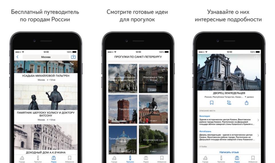 Російський пошуковик «Яндекс» випустив додаток «Прогулянки» — своєрідний цифровий путівник по Росії. Він автоматично складає прогулянкові маршрути по самим цікавим пам’яток різних російських міст.