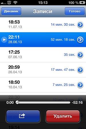 Якщо ви користуєтеся диктофоном досить часто, то кількість все збільшуються голосових заміток поступово переростає в якість. Крім цього, чим довший запис, тим, природно, більше місця на пристрої вона займає. Якщо голосові замітки необхідно попередньо зберегти, то найкраще перенести їх на комп’ютер. Для цього синхронізуєте свій i-девайс з комп’ютером, активувати опцію «включати голосові записи» в синхронізації Музики, і всі ваші голосові записи з’являться в папці Voice Memos в домашній директорії з документами iTunes для Mac — /Users/Ім’я користувача/Music/iTunes/iTunes Media/Voice Memos, для Windows — C:/Users/Имя користувача/Music/iTunes/iTunes Music/Voice Memos. Щоб видалити нотатки з пристрою, зайдіть в Диктофон і виберіть непотрібну голосову замітку, після чого натисніть на кнопку «Видалити». Повторіть процедуру для інших записів.