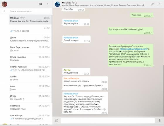 Що заважало зробити повноцінну веб-версію для всіх браузерів, а краще і зовсім окремі програми для Windows і OS X? У мене частину роботи зав’язана на спілкування в WhatsApp, і мене дико дратує, що у цього додатка досі немає настільної версії. Viber, Skype, Telegram, та навіть ВКонтакте і Facebook (з допомогою клієнтів Jabber) можна використовувати у вигляді окремих настільних програм, у WhatsApp ж такої можливості немає. І ось ця обмежена версія виглядає як кинута з барського плеча подачка користувачам.