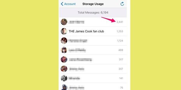 Якщо вам цікаво, з ким ви спілкуєтеся найбільше, це дуже просто перевірити. Для цього зайдіть в налаштування свого аккаунта і перевірте вкладку Storage Usage. Тут ви побачите кількість повідомлень, відправлених кожного користувача.