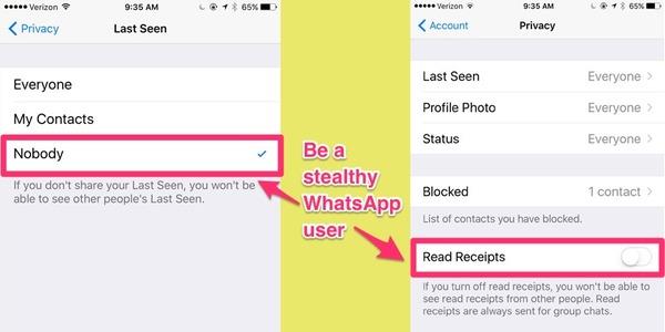 Хоча в групових чатах користувачі завжди будуть бачити, коли ви прочитали повідомлення, в особистій бесіді цю можливість можна відключити. Для цього зайдіть в налаштування облікового запису, пройдіть в розділ приватності і вимкніть параметр «Повідомляти про прочитання» («Read Receipts»). Перемикання опції «Last Seen» робить вас невидимим онлайн.