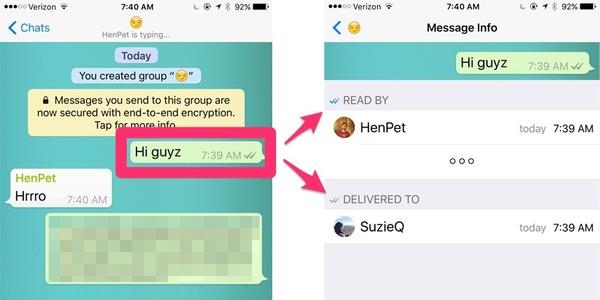 Якщо ви спілкуєтеся в груповому чаті і хочете перевірити, хто із співрозмовників вже прочитав ваше повідомлення, а хто — ні, перемістіть вікно чату вправо. Дві сірі галочки означають, що повідомлення доставлено. Дві сині галочки — одержувач вже його прочитав.