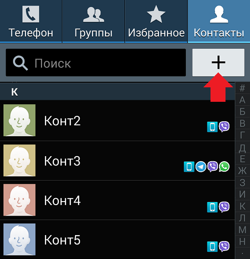 Натисніть на кнопку додавання нового контакту — це кнопка у вигляді плюсик.