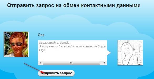 3. У наступному вікні відправте запит контакту на обмін даними. Можна змінити текст запиту на свій або залишити за замовчуванням. Клацніть — Відправити запит: