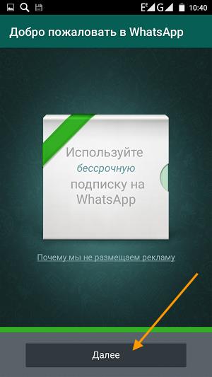 4. На останньому кроці реєстрації WhatsApp, тиснемо кнопку «Далі».