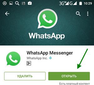 4. Після завантаження та установки WhatsApp, тиснемо кнопку «Відкрити».