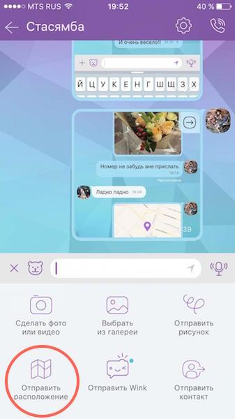 - Перед вами розкриється меню опцій, вам потрібна — Відправити розташування