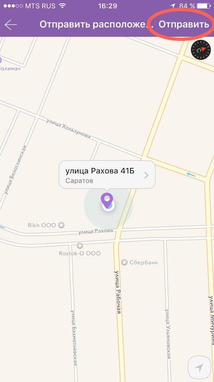 - Програма визначить ваше знаходження, а кнопка «Надіслати», перешле відомості співрозмовнику. Перед відправкою, проконтролюйте правильно чи визначено на карті місце розташування