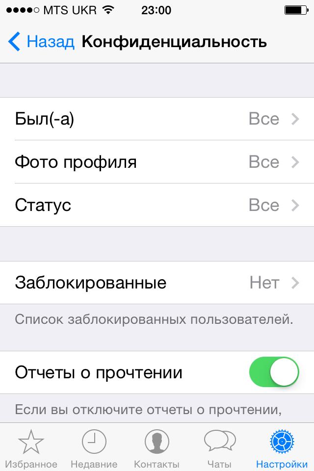 Всередині Вотсап є налаштування приватності, що дозволяють обмежити тих, хто бачить час останнього відвідування. Вимкнути напис «підключений» — не можна!