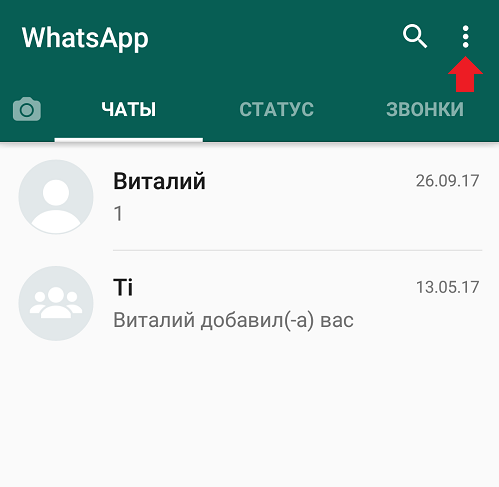 Запустіть WhatsApp на своєму смартфоні, після чого викличте меню, натиснувши на три точки.