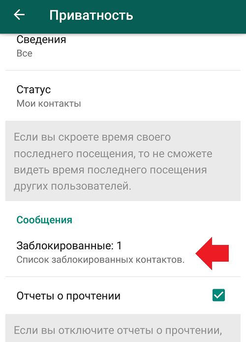 На наступній сторінці ви побачите різні підрозділи меню, знайдіть серед них рядок «Заблоковані» і натисніть на неї.