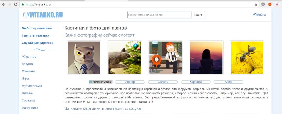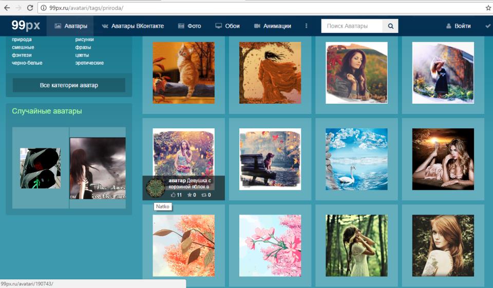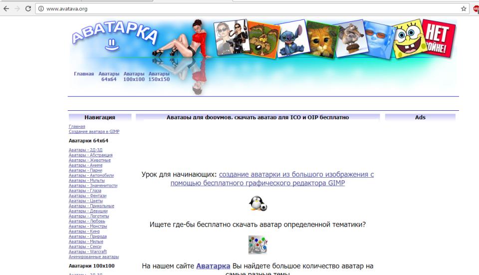 Ще один корисний сервіс, на якому ви зможете швидко завантажити аватар — це Аватава. Колекція аватарів і юзерпиков сайту налічує понад 300 тисяч різних і цікавих зображень. Всі файли зручно розсортовані по вирішенню і тільки потім за категоріями. Дуже зручно для тих, хто шукає фотки конкретного розміру.