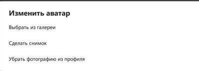 Натисніть на свою фотографію. Далі з’явиться список дій, які ви можете зробити (прибрати аватар, зробити знімок або завантажити існуюче зображення):