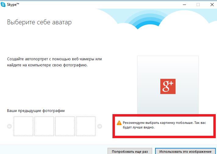Якщо після спроби завантаження фото, ви отримали системне повідомлення про те, що воно дуже маленьке, слід поміняти змінити розмір аватара в Скайпі. Спробуйте вибрати зображення побільше або скористайтеся графічними редакторами, щоб збільшити дозвіл існуючої фотки.