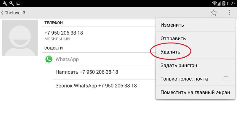 Вибравши потрібний контакт, необхідно його просто видалити. Робиться це за наступним алгоритмом: