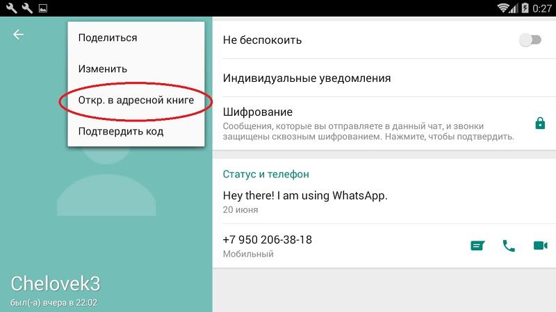 - Використовуючи смартфон, натисніть на кнопку «Меню», виберете — «Відкрити в адресній книзі».