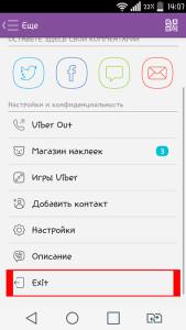 Щоб вийти з програми на комп’ютері або телефоні необхідно зайти в меню і клацнути на кнопці «вихід». Після того, як була зроблена ця процедура, дзвонити та писати повідомлення вам користувачі не зможуть, а сама утиліта буде працювати в обмеженому режимі. Юзати всі функції програми можна буде відразу після наступного запуску.