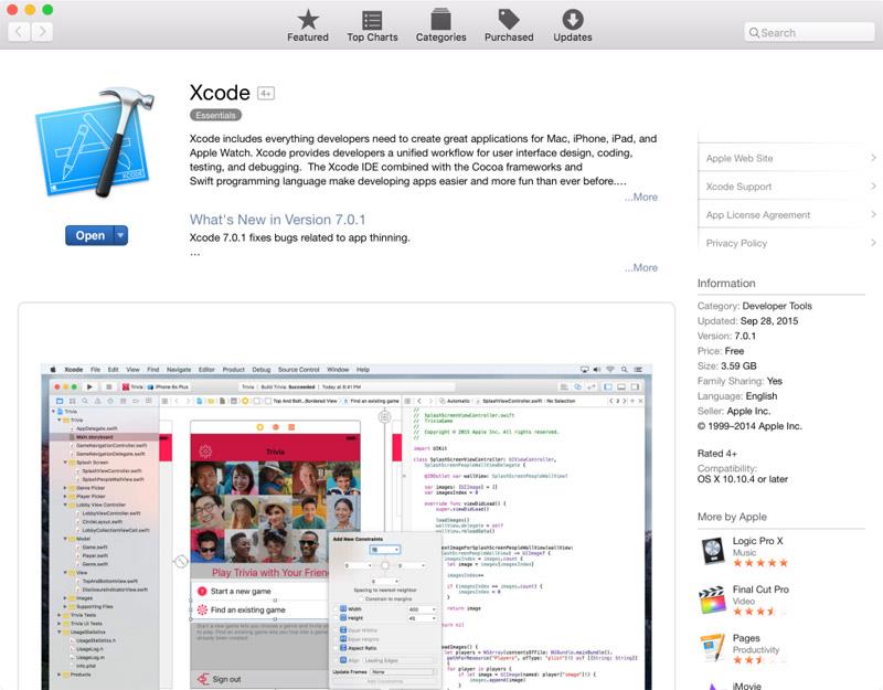 - Xcode версії 8 або вище, завантажений з Mac App Store.