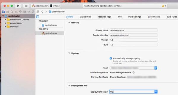 Крок 7: Поверніться в головне вікно Xcode, у лівій панелі виберіть ppsideloader. Тут вам потрібно змінити параметр Bundle Identifier. Потрібно прописати унікальний ідентифікатор, наприклад com.вашеимя.whatsapp.