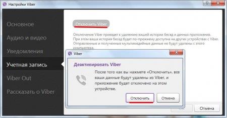 Запускаємо Вайбер, знаходимо в меню «Інструменти», і вибираємо в них пункт «Параметри». Вибираємо в меню «Обліковий запис» і натискаємо «Відключити Viber». У новому віконці підтверджуємо наше рішення і слідуючи підказкам виробляємо відключення.