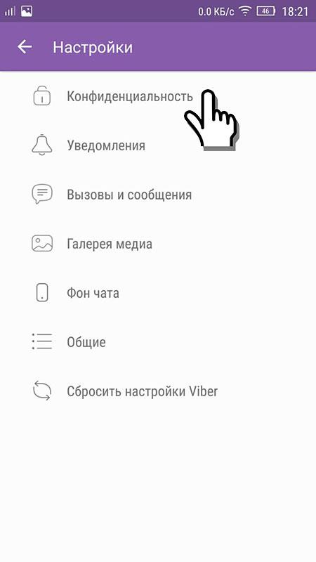- Переходимо по наступному шляху: меню — налаштування — конфіденційність.